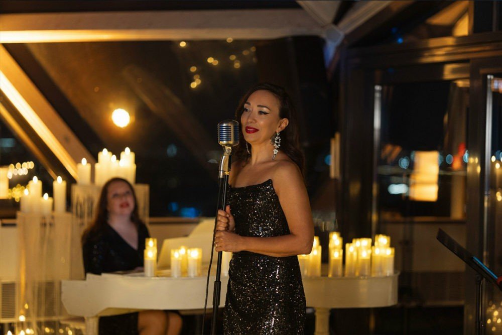 На сцене — блистательная Ольга Абдуллина и виртуозный пианист Лев Шишкин. Их исполнение — это тонкое и чувственное погружение в мир Уитни: от трепетной нежности до мощных эмоциональных всплесков, где каждая нота проживается по-настоящему. А за панорамными окнами — вечерний Петербург во всей своей красоте: огни города, сияние Исаакиевского собора и устремлённая ввысь башня «Лахта Центра». Пространство, где музыка и вид сливаются в единое впечатление.