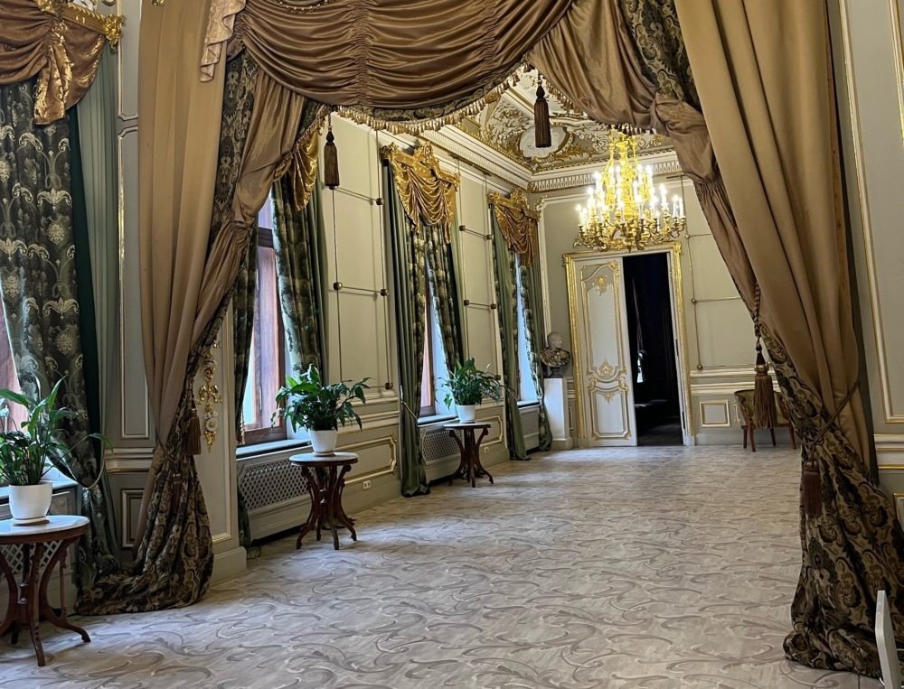 Снаружи обычный жёлтый дом. Внутри один из красивейших частных дворцов Петербурга, куда попасть можно только по записи. Это не музей со свободным входом — не экспозиция, а живая роскошь дома. Здесь принимали элиту Империи, обсуждали государственные дела и устраивали закрытые вечеринки. Особняк принадлежит Союзу архитекторов: именно поэтому парадные интерьеры XIX века сохранились почти нетронутыми. Без группы и предварительной записи сюда невозможно попасть — это закрытый объект.